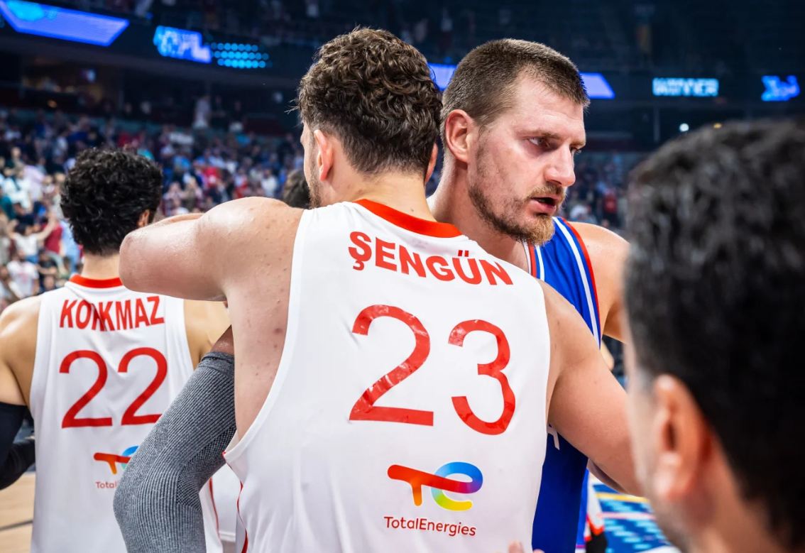 但是,今夏的欧锦赛,再次让约基奇的短板被无限放大。世界排名第二的塞尔维亚,在16进8比赛中意外不敌芬兰,连续两届止步16强。算上小组赛以及淘汰赛阶段比赛,约基奇出战6场,场均贡献22.3分9篮板4.2助攻1.8抢断,他的投篮命中率很高,但和掘金类似,孤掌难鸣的同时,很容易被对手针对。就以塞尔维亚最后两场比赛为例,打土耳其,约基奇和申京的正面对决,申京轰下28分13篮板8助攻,约基奇22分9篮板4助攻3抢断;输给芬兰一战,约基奇13中9,罚球19中14,空砍33分8篮板3助攻3抢断。